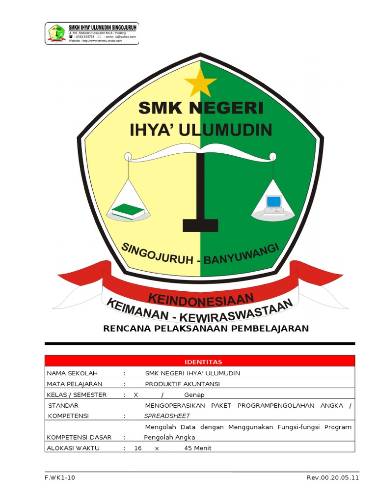 Ringkasan materi ppkn x semester 1 smk/sma edisi revisi (kumpulan materi ppkn dari rpp). Download rpp prakarya dan kewirausahaan sma kurikulum 2013 ini untuk melengkapi administrasi anda sebagai guru sma dan smk. Kompetensi inti kompetensi dasar silabus dan rpp smk terbaru. Rpp smk pengantar akuntansi keuanga. Seperti mata pelajaran yang lain, memasuki tahun ajaran baru, pasti dibutuhkan perangkat pembelajaran baru. Paket program pengolah angka/spreadsheet kelas/semester : Di era persaingan yang semakin ketat smk / mak. Smk negeri 5 kuningan mata pelajaran : Silabus smk akuntansi kurikulum 2013 ini sebagai salahsatu perangkat pembelajaran ini wajib dimiliki oleh setiap guru sebagai materi contoh untuk menciptakan rpp, prota, dan prosem/promes, baik untuk yang mengajar di kelas x, kelas xi, maupun kelas xii smk. Setelah berkecimpung dan disibukkan dengan ard (aplikasi raport digital) yang cukup membuat beberapa dewan guru merasa repot. Perangkat pembelajaran kurikulum 2013 sd kelas 1 revisi 2017 atau rencara pelaksanaan pembelajaran ialah manajemen wajib bagi guru rpp ini lengkap untuk satu tahun yang terdiri dari semester 1 dan semester 2 yang dismpan dalam bentuk docx dalam akun google drive, jadi anda. Pada kesempatan kali ini saya akan membagikan kembali file rpp sd kelas 3 semester 2 kurikulum 2013 revisi 2018 terlengkap. Kali ini kami akan membagikan rpp 1 lembar untuk mata pelajaran spreadsheet/program pengolah angka semester 2, untuk semester 1 sudah ada di artikel sebelumnya.