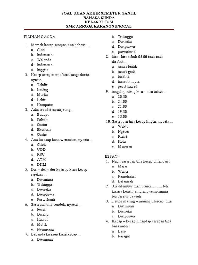 Kisi Kisi Pts Bahasa Sunda Kelas 6 2020 Pdf from imgv2-1-f.scribdassets.com Sistem kami menemukan 25 jawaban utk pertanyaan tts seragam bahasa inggris. 10 serepan tina basa perancis, di antarana: Kumpulan ungkapan cinta bahasa inggris dan arti pilihan. Jika ya, anda bisa menggunakan ucapan ulang tahun dalam bahasa inggris untuk memberi selamat atau harapan kepada mereka. Jika kamu bisa bertanya atau menjawab suatu pertanyaan dengan tepat. All of my friends that i love, in this a great moment, let me give a speech in semoga di atas pidato bahasa inggris tentang lingkungan di atas dapat bermanfaat untuk sahabat kbi sekalian dalam menyusun sebuah pidato. Assalamualakum wr wb best wishes for all of us. Soal uas 1 bahasa sunda.